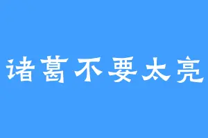 诸葛不要太亮
